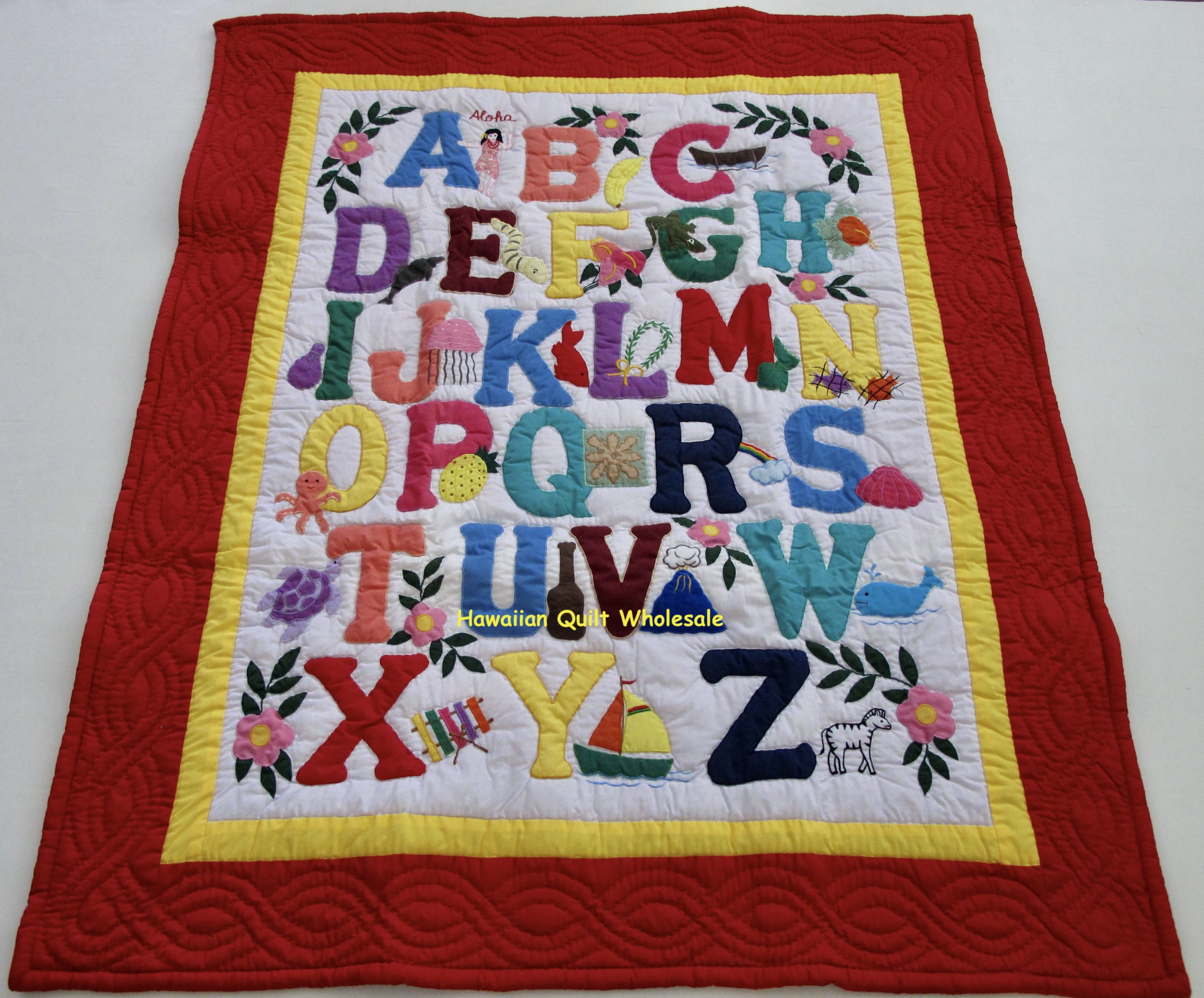 We use the traditional world famous Hawaiian quilting stitch/applique method. This baby blanket is made of 65% polyester and 35% cotton. We found this combination to be the best for durability and texture. We hand-washed our quilts three times to ensure material integrity.