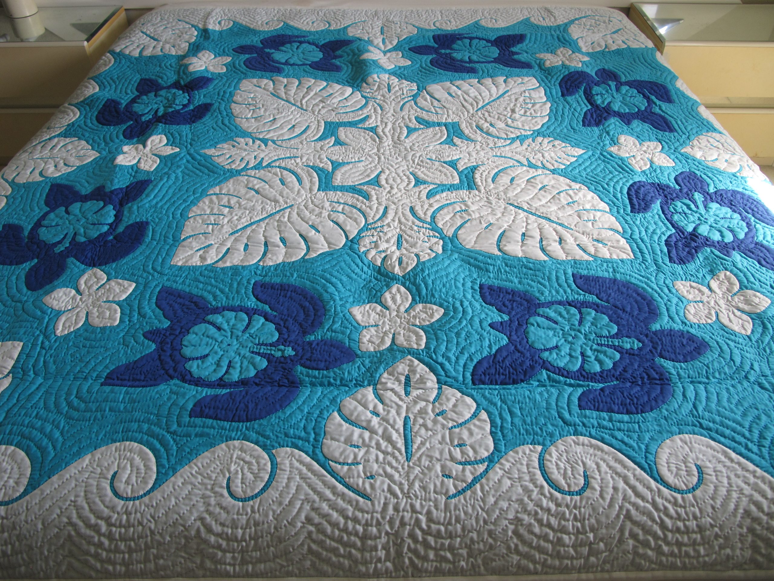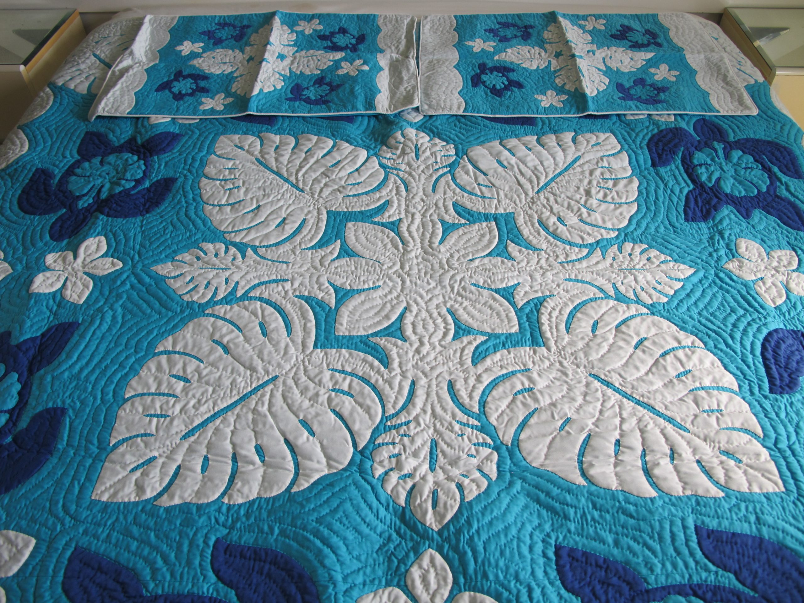 We employ the time-honored, renowned Hawaiian quilting stitch/appliqué technique. This is a brand-new, completely HAND QUILTED and HAND APPLIQUÉD bedspread that is NOT MACHINE EMBROIDERED. It is versatile enough to be used as a bed cover, wall hanging, or lap blanket. It fits for full and twin size beds. Cloth hangers are sewn to the back of the bedspread to allow for convenient hanging. Bring some Hawaiian flair and Aloha into your house. Our quilts are wonderful discussion pieces for any house and wonderful presents for any special occasion!