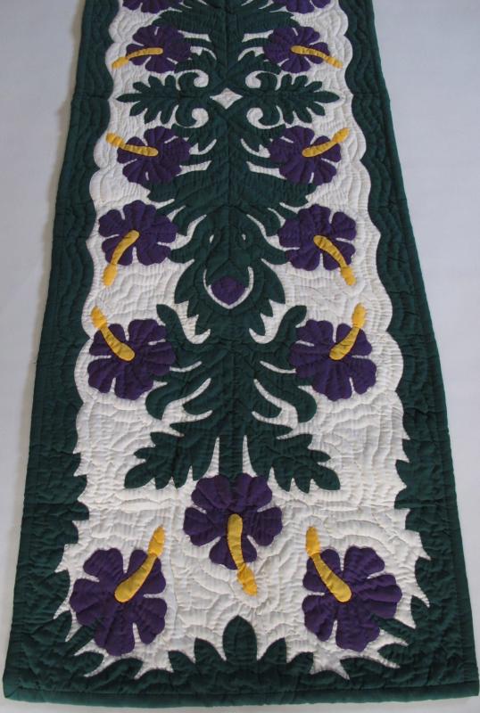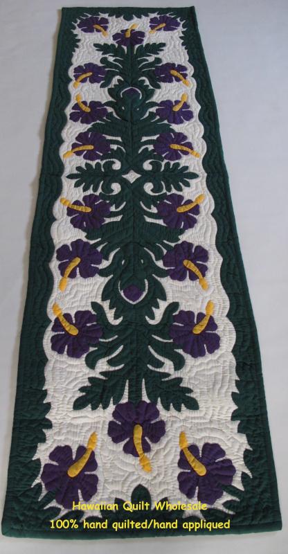 This is a brand new, 100% HAND QUILTED and HAND APPLIQUED table runner. It can be used as a wall hanging, bed runner or counter spaces. Add some Hawaiian style and bring Aloha to your home or office. It makes a terrific gift for any special occasion! It can also be framed beautifully.