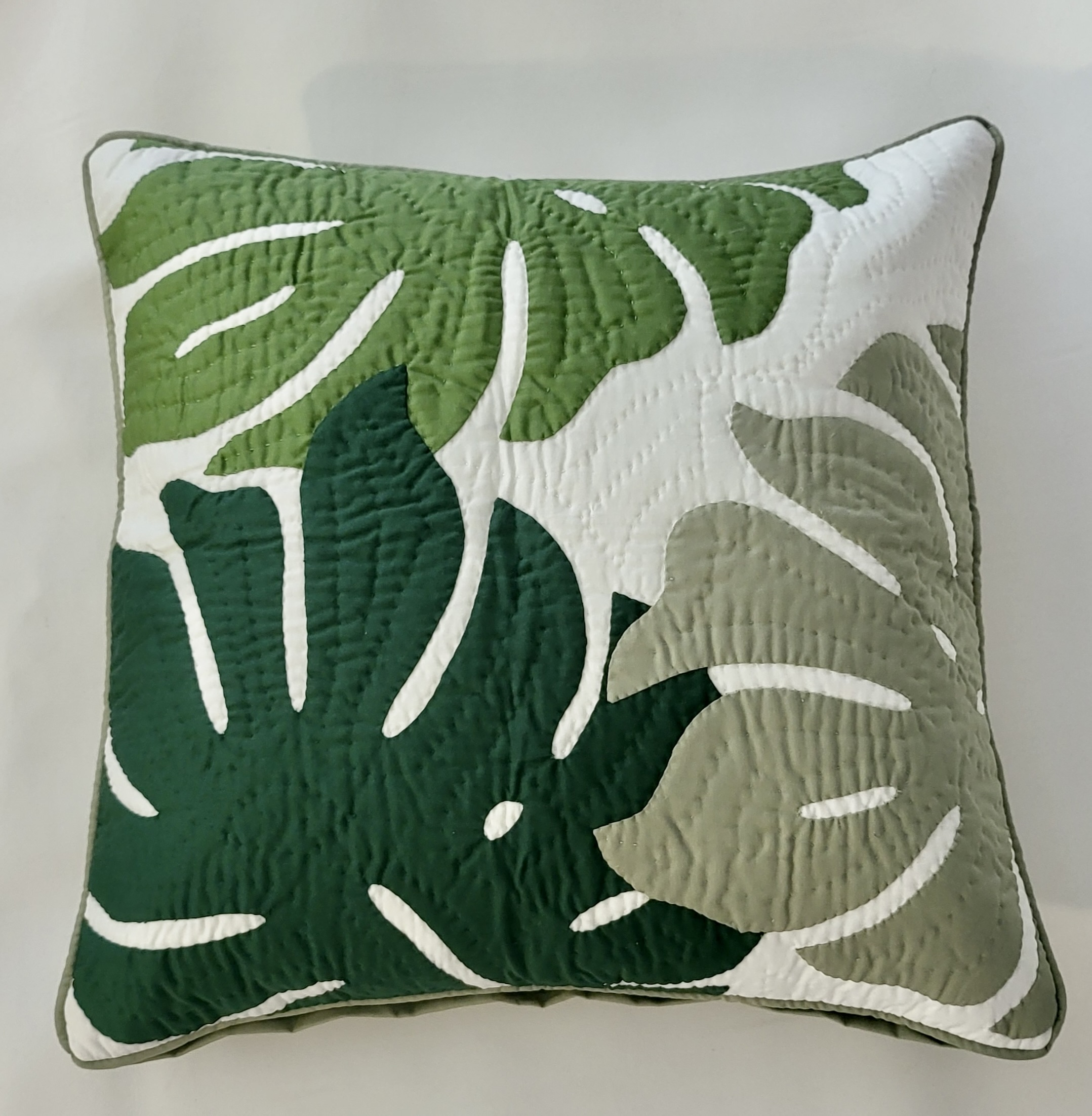 These 2 pillow covers are made of 100% cotton using superior materials. We found this combination to be the best for durability and texture. We hand washed our quilts three times to ensure material integrity. We use the traditional world famous Hawaiian quilting stitch/applique method.