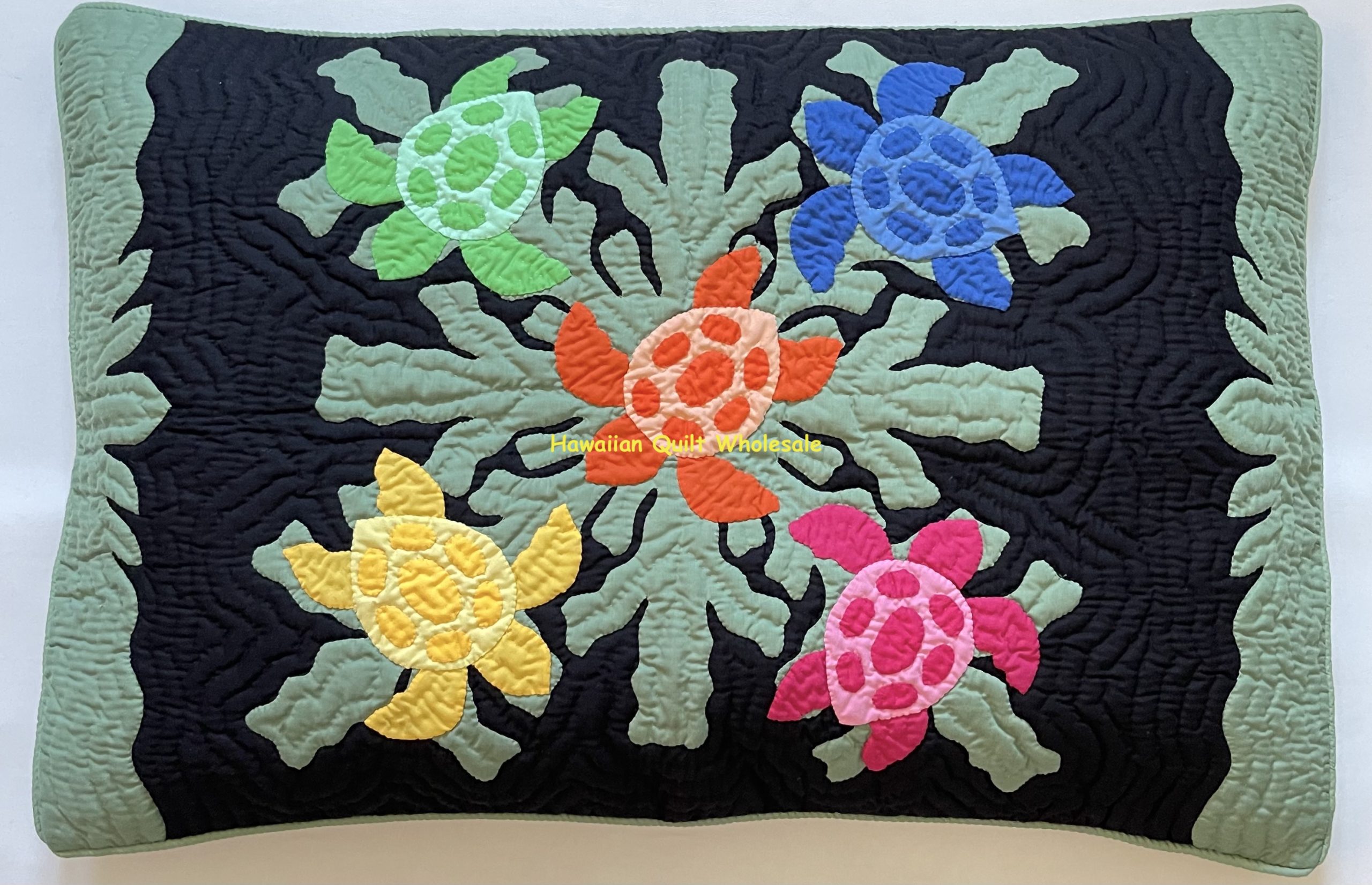 These 2 pillow shams are made of 65% polyester and 35% cotton. We found this combination to be the best for durability and texture. We hand washed our quilts three times to ensure material integrity. We use the traditional world famous Hawaiian quilting stitch/applique method.