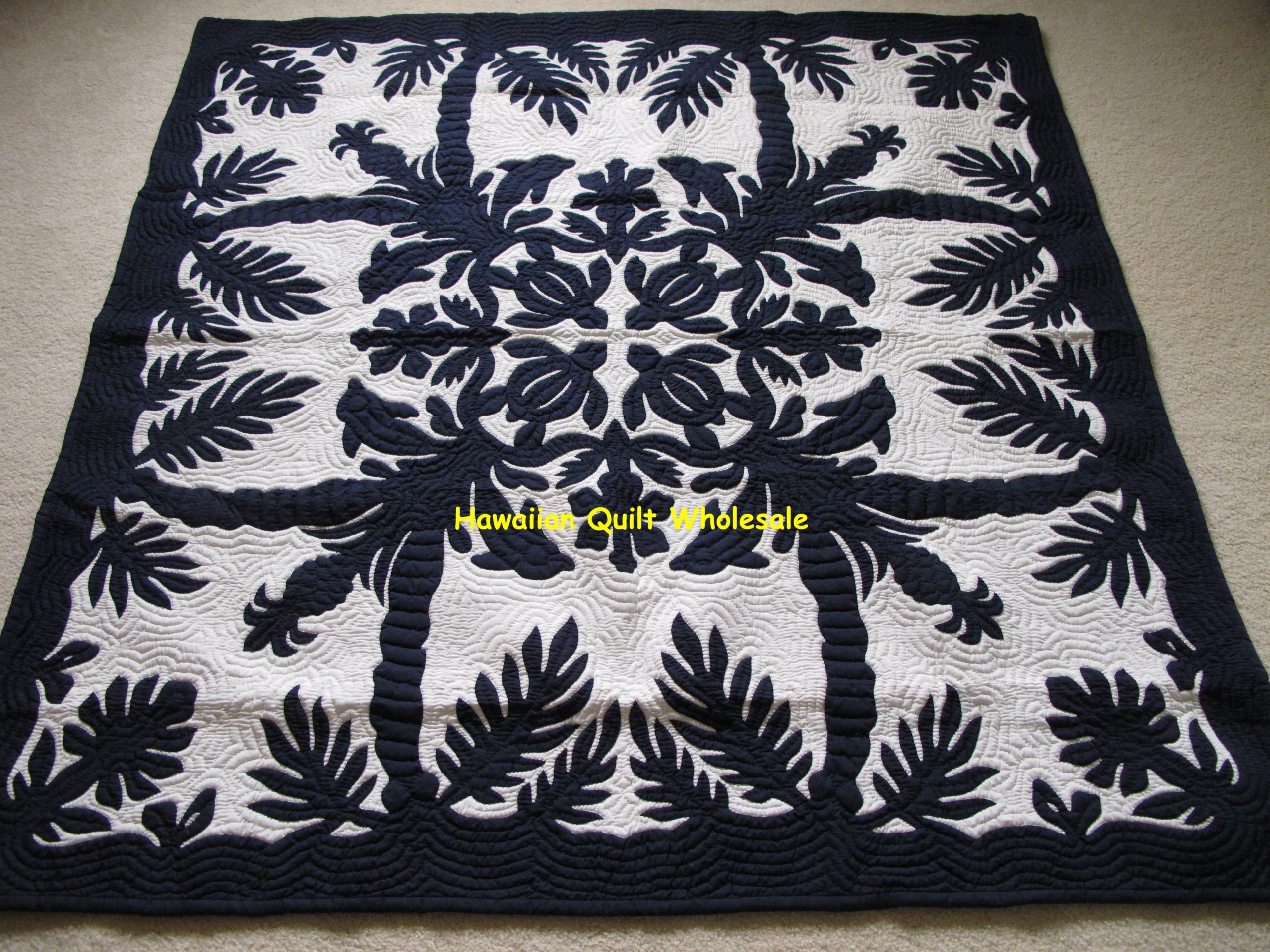 The traditional Hawaiian quilting stitch/applique method is the most renowned in the world. This lap blanket/wall decoration is composed of 65% polyester and 35% cotton. We discovered that this combination was the most effective in terms of texture and durability. Hand-washing our quilts three times was necessary to guarantee their material integrity. This wall hanging is a newly made item that has been entirely quilted and appliqued by hand, without the use of machine embroidery. The rear of the item is equipped with fabric hangers for convenient hanging. Add to your house or business with the vibrant essence of Hawaiian culture and embrace the spirit of Aloha. Additionally, it has the potential to be aesthetically presented. Our quilts serve as excellent conversation starters and eye-catching centerpieces for both homes and offices. Additionally, they make fantastic gifts for any memorable occasion.