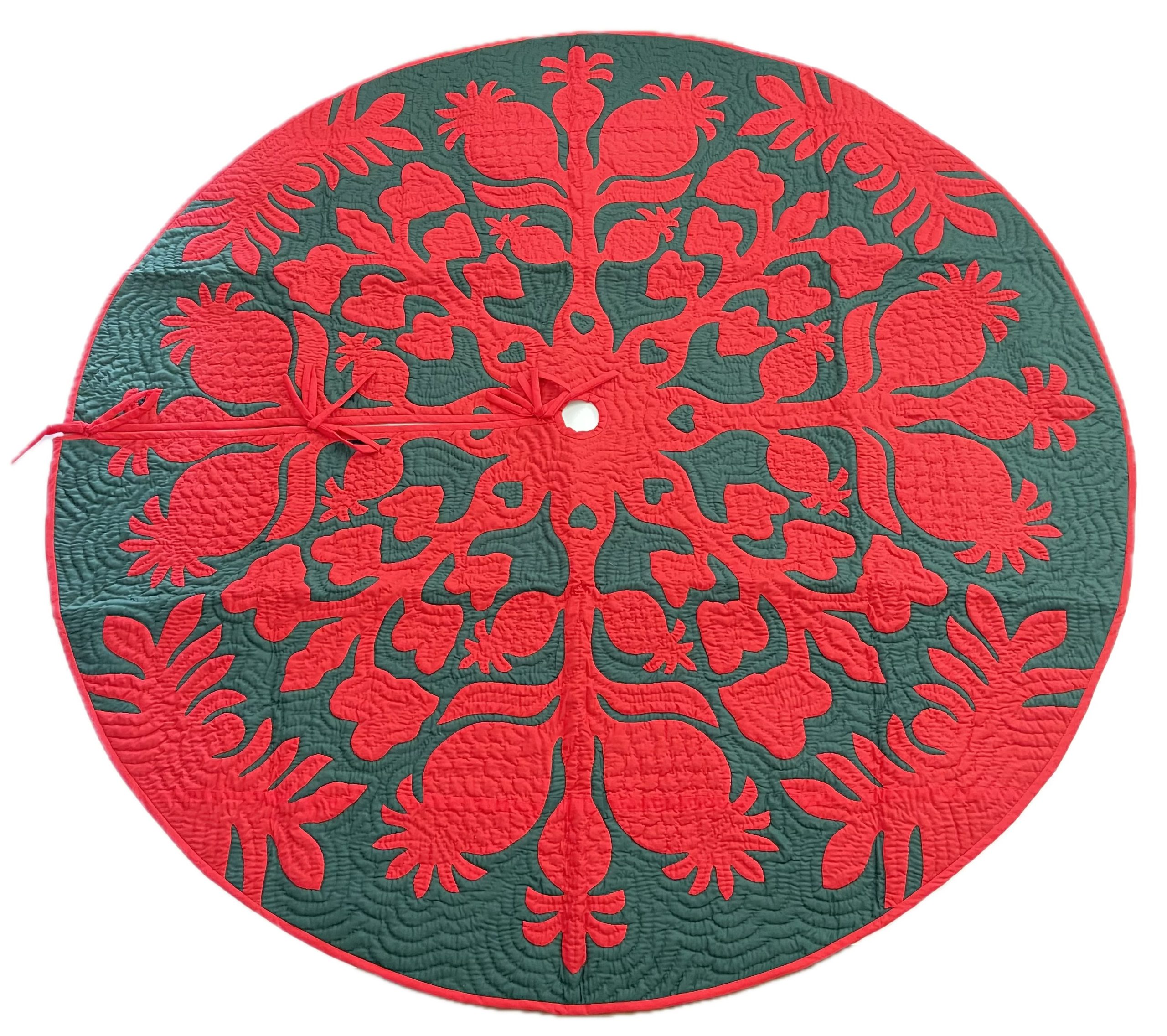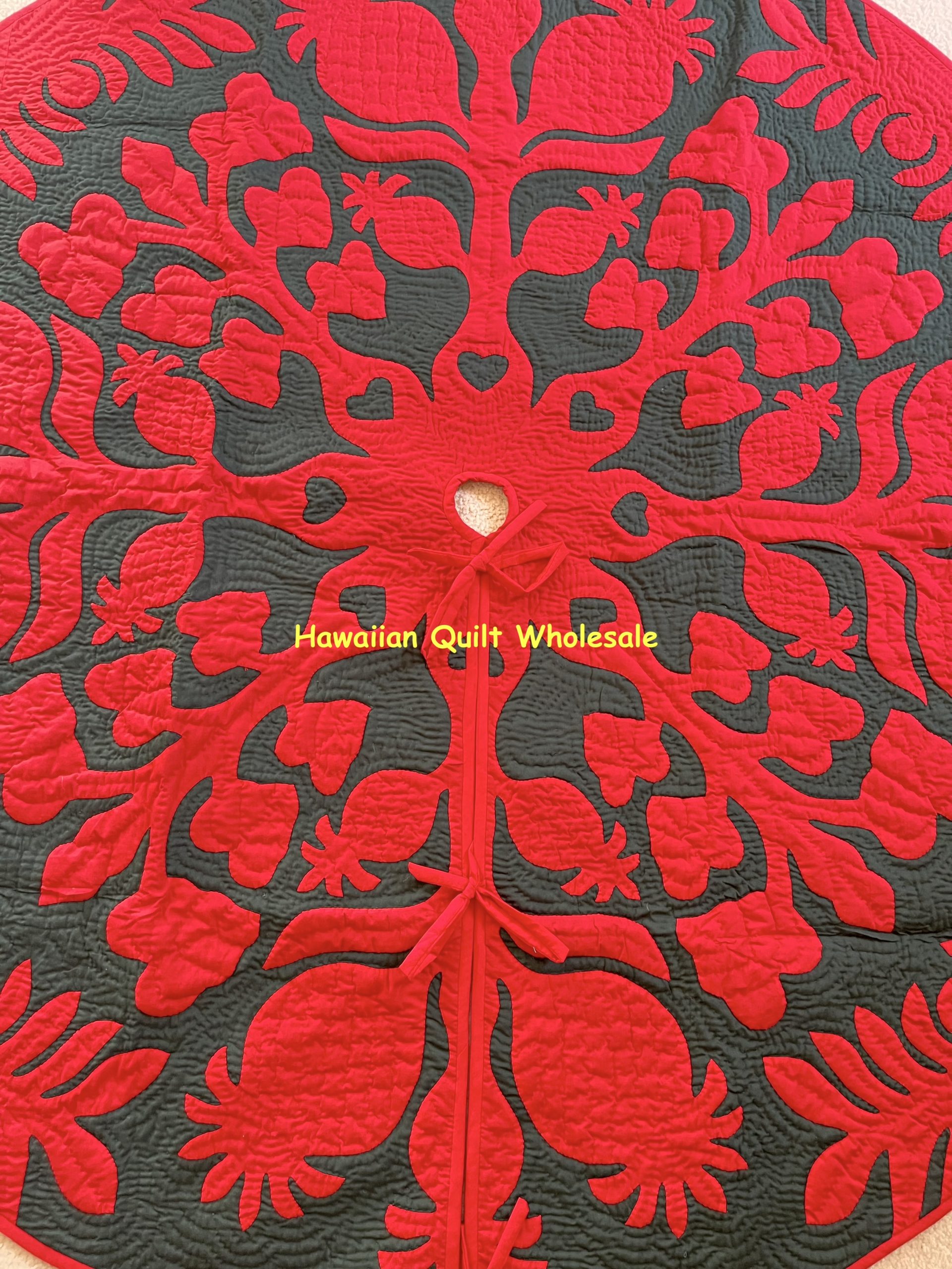 This is a brand new, 100% HAND QUILTED and HAND APPLIQUED Christmas tree skirt. It looks great under the Christmas tree and it has bow tie strings for easy closure. Add some Hawaiian style and bring Aloha to your home or office. Our quilts makes a great conversation/centerpiece to any home and also it makes a terrific gift for any special occasion! It can also framed beautifully.